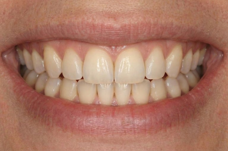 After wearing the series of aligners as instructed, your teeth will be gently guided into their correct positions. This image shows the same patient from Step 1 with a perfectly straight and confident smile.