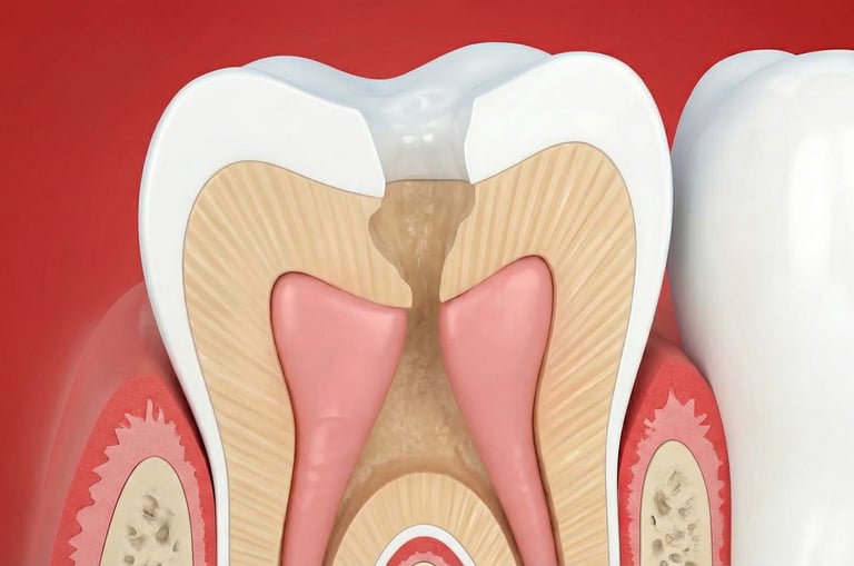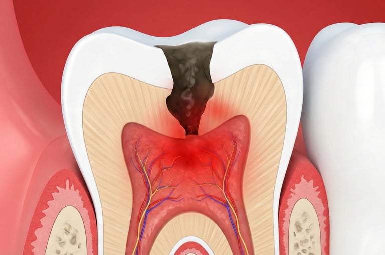 The need for a root canal arises when a cavity is left untreated and the decay penetrates deep into the tooth, reaching the pulp. The pulp contains the tooth's nerves and blood vessels. When it becomes infected, it causes severe pain and can lead to an abscess.
