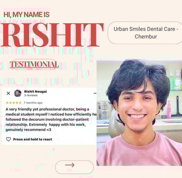 At Urban Smiles Dental Care, we don't just treat teeth; we build relationships. Being rated as the best dental clinic in Chembur, our greatest achievement is the trust of our patients. Whether it is a complex Root Canal Treatment, a Dental Implant, or a simple Teeth Cleaning, our patients appreciate our transparent approach, hygiene, and pain-free techniques.
